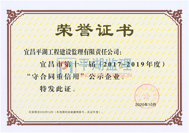 | 宜昌市第十二屆(2017-2019年度)守合同重信用企業(yè) |