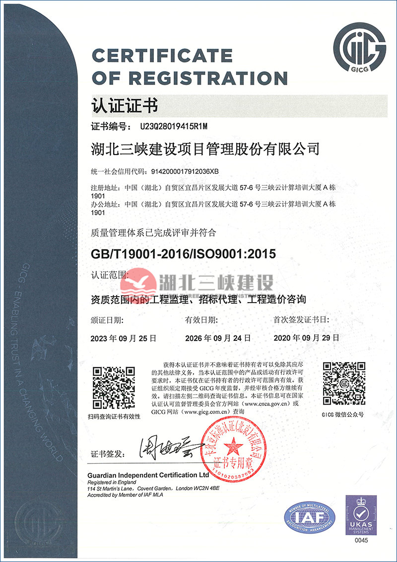 質量管理體系證書