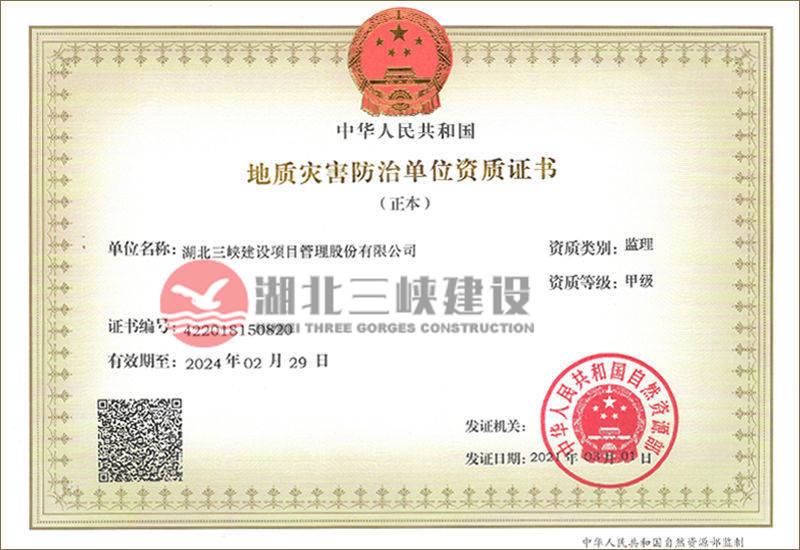 地質(zhì)災(zāi)害防治單位資質(zhì)證書